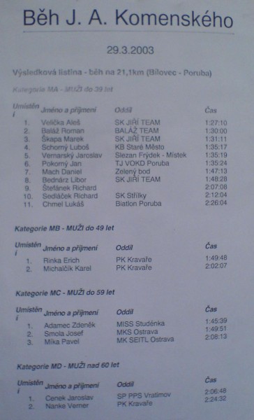 Běh J. A. Komenského - 8. ročník